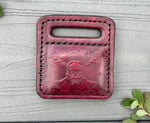 This is a leather weighted bandana holder that weighs approximately 8-9 oz. It keeps your bandana neatly, comfortably, and securely in your back pocket even while riding. Simply fold your bandana, slide it into the slot of the Pocket Lock, then slide the Pocket Lock into your back pocket. The Pocket Lock is filled with 6 oz. of hand poured lead, all edges on it are burnished smooth. This is a Harp Leather original item that I came up with after losing one too many bandanas while on my scoot. Stamped with a skull and cross bones on one side and American made on the other.